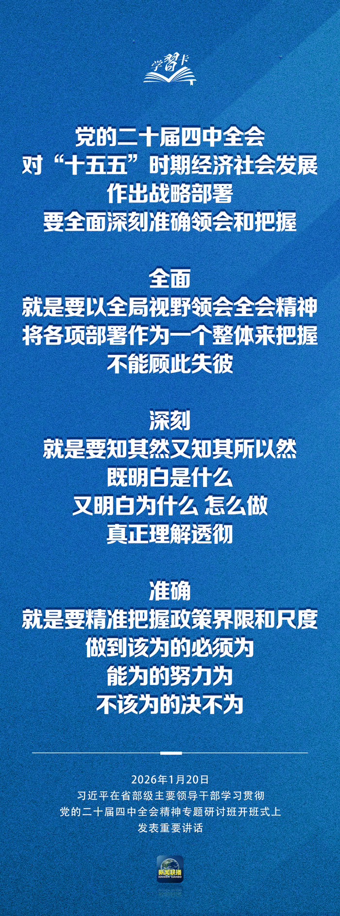 省部级主要领导干部学习贯彻党的二十届四中全会精神专题研讨班20日上午在中央党校(国家行政学院)开班。中共中央总书记、国家主席、中央军委主席习近平在开班式上发表重要讲话强调,要把学习贯彻党的二十届四中全会精神不断引向深入,更好统一思想、凝心聚力,在党中央坚强领导下扎实做好各项工作,努力实现“十五五”良好开局。